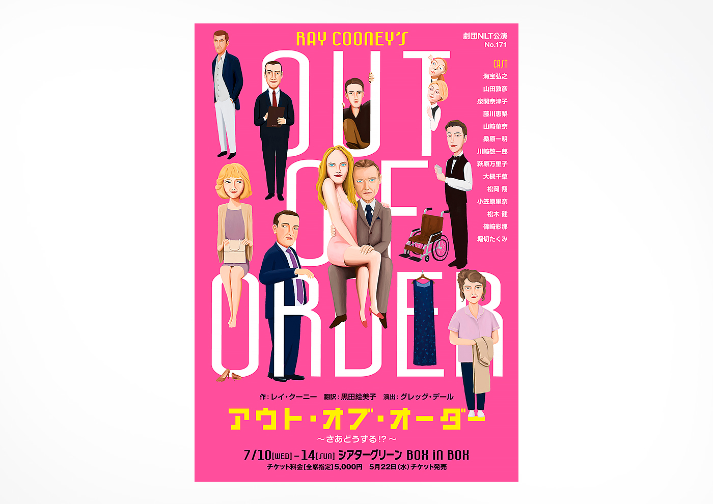 「アウト・オブ・オーダー」公演チラシ 2025年7月制作 Graphic Illustration 「Out of Order」flyer Out Of Order [演劇公演チラシ] CL:劇団NLT 「フールズ」公演チラシ